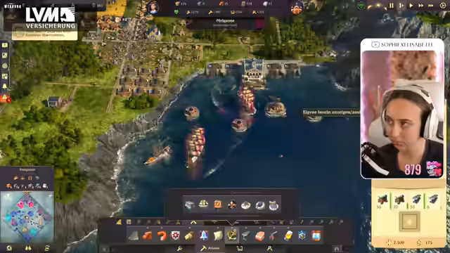 07:21:51Die Streamerin stellt fest, dass die Schiffe der Flotte zusammenfahren. Sie können ausbauen auf die nächste Stufe. Ihr Stahl nervt sie, dass sie nicht so ganz hinterherkommt mit den Stahlträgern. Sie greift ein Piratenschiff an. Sie zieht durch, obwohl die Piraten gar nicht zurückschießen. Sie versenkt das Piratenschiff. Es kommen aber immer mehr Schiffe. Sie wird von zu vielen Schiffen angegriffen und muss ihre Schiffe zurückziehen. Zwei Schiffe gehen verloren. Das tut weh. Es sind viele Schiffe von den Piraten unterwegs. Sie muss weiter ausbauen, um zum besseren Hafen zu kommen. Sie kauft einen Anteil von ihm. Sie hat sich gewundert, warum sie so viel Geld hat. Jetzt kostet es schon 579.000. Ihre Expedition kehrt unfair sehr zurück, ohne das gefunden zu haben, wofür sie ausgesandt wurden. Sie kann jetzt aber tatsächlich ausbauen. Es ist Zeit der Wissenschaft und Wunder. Die ersten Ingenieure wollen jetzt Brillen haben. Es läuft immer noch nicht mit Rum hier. Sie muss eine Handelsroute mit Rum machen. Sie hat jetzt keine Zeit für die Arktis. Sie hat Ingenieure. Sie hat jetzt auch einen großen Hafen. Und der große Hafen hat dann auch die Dampfschiffswerft. Sie fängt erst mal mit den Brillen an. Sie braucht eine Kupfermine, eine Zinkmine und eine Quarzgrube. Sie produziert ja schon Glas. Sie hat dieses Item mit dem Glas. Deswegen sind die hier pausiert, meine Glashütten. Sie braucht vorher aber noch Stahlbeton. Stahl läuft schon gar nicht mal so gut. Sie will gerade mehr Stahl produzieren, als sie braucht. Sie baut das Stahlbetonwerk einfach mit hier hinten hin.