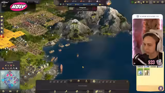 01:07:53Die Streamerin stellt fest, dass sie neue Sägel braucht und macht einen Schoner bereit. Sie bekommt einen Tiger geschenkt. Sie will ein Schiff reparieren und baut einen Reparaturkran. Sie bringt den T-Shirt rüber. Sie fragt, ob sie schon weitere Welten freigeschaltet hat und sagt, dass sie gerade auf dem Weg nach N-Besser ist. Sie stellt fest, dass in Pirigan gerade Erntedankfest ist. Sie überlegt, ob sie mehrere Reparatur-Kräne bauen soll, damit das schneller repariert. Sie startet eine weitere Expedition. Sie kommt in einem kleinen belebten Hafen der Nordküste an. Es bedarf einiger Beobachtung, doch dann wird ihrer Seeleutin klar, dass das Mosaik aus tiefhängenden Tüchern einem bestimmten Muster angeordnet ist. Sie versucht, die Einheimischen in ihrer Muttersprache zu begrüßen. Sie gestikuliert, um ihr Anliegen zu übermitteln. Sie nähert sich einem Mann und tippt ihm auf die Schulter, um seine Aufmerksamkeit zu erregen. Sie zeigen mit Gesten, dass sie mit ihm sprechen möchten, auf die Umgebung zeigen und den Daumen heben, um anzudeuten, dass ihnen das Haus gefällt. Sie legen die Hand aufs Herz, um anzudeuten, dass sie sich freuen, ihn zu treffen. Ihre Moral ist wieder auf 100%. Sie macht natürlich wieder zusätzliche Rationen bereit. Sie überlegt, wie sie sich besser verteidigen kann und dass sie mehr Kriegsschiffe bauen sollte. Sie fragt, was ein Zuschauer mit seiner Hand gemacht hat. Sie stellt fest, dass sie aus Versehen zweimal ein Schmeichchen geklickt hat und dass ihr das Minuspunkte gebracht hat. Sie baut das Lagerhaus noch mit.