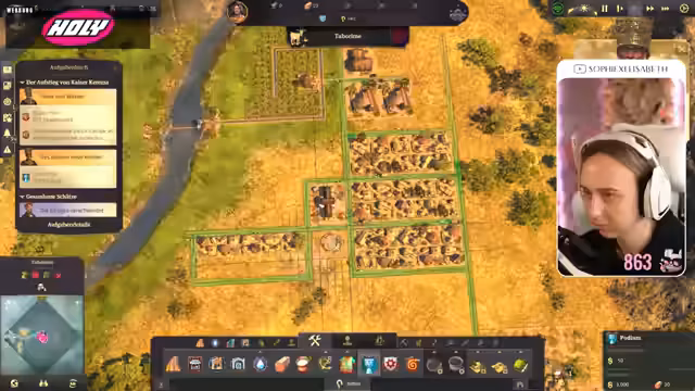 04:23:20Die Streamerin plant den Ausbau ihrer Stadt in Anno 1800, wobei sie Schwierigkeiten hat, Hopfenplantagen und Getreidefelder unterzubringen, während sie gleichzeitig Platz für Minen und Straßen lässt. Sie überlegt, die gesamte Stadt zu verschieben, um mehr Platz zu schaffen, und verbindet Straßen, wobei sie sich fragt, ob die Nähe von Großkirchen negative Auswirkungen hat. Sie betont, dass man in Anno 1800 alles entspannt verändern kann, hat aber Angst, etwas zu zerstören. Beim Bau eines Getreidefeldes stellt sie fest, dass ihr Bauern fehlen und sie Bürger benötigt. Sie schließt eine Mine an und erhält einen Hinweis aus dem Chat. Anschließend entdeckt sie ungewöhnliche Trümmer auf den Wellen und startet eine Expedition mit einer Taucherglocke, die jedoch tragisch endet, als die Glocke den Tauchgang nicht übersteht und die Besatzung stirbt. Die Streamerin plant, in die neue Welt zu reisen, und nimmt eine Insel ein, wobei sie ein Foto von einer Familie macht und deren Bedürfnisse nach einer Kirche und Feuerwehr erfüllt. Sie denkt über die Aufrüstung nach und bemerkt, dass viele Inseln bereits belegt sind. Sie äußert ihre Vorliebe für die gleichbleibende Kontormusik und bedankt sich bei einem Zuschauer für ein Abonnement.