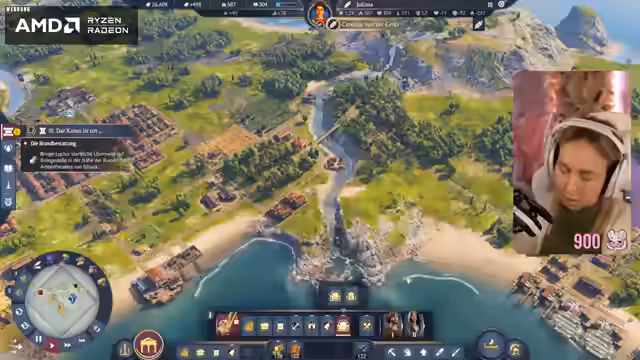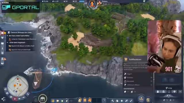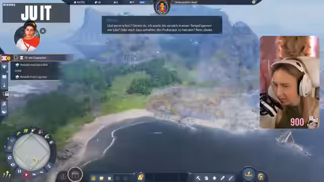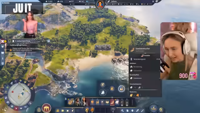 07:46:59Nachdem klar wird, dass nur Landeinheiten die feindliche Insel angreifen können, schickt die Streamerin ihr Schiff zurück und bildet eine Einheit aus, um die kleine Insel anzugreifen. Sie befürchtet Gegenangriffe feindlicher Boote und Ballisten. Eine Lösegeldforderung von 14.900 wird gestellt, was ihre Finanzen weiter belastet. Sie beschließt, ihr Flaggschiff für den Angriff zu nutzen, obwohl sie Angst hat, es zu verlieren. Der Angriff auf den Turm der feindlichen Insel ist überraschend erfolgreich, da ihr Schiff „gigastrong“ ist und 33 von 44 Einheiten überleben. Sie überlegt, weitere Außenposten anzugreifen, wird jedoch von der feindlichen Versorgungsflotte überrascht und verliert ihre Kämpfer im Wasser. Sie erkennt, dass sie versehentlich die falsche Insel besiedelt hat, die nicht das Questziel war, und beschließt, die Siedlung abzureißen.