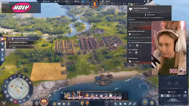 07:26:44Die Streamerin bemerkt einen akuten Mangel an Steinen und Holz, was sie frustriert, da ihre Steine anscheinend ständig verkauft werden. Sie realisiert, dass sie keine Steine produziert, was sie als Denkfehler identifiziert, da sie hauptsächlich Flechtwerk benötigt. Die kleine Insel stellt eine Herausforderung dar, insbesondere beim Aufbau einer Kleinvogelpopulation, die Schmieden erfordert. Sie kann ein kleines Kriegsschiff bauen, benötigt aber Muscheln und hat keine Möglichkeit, Aale zu züchten. Die Notwendigkeit, eine Handelsroute für Aale und Schuhe einzurichten, um die zweite Stufe der Bewohner zu erreichen, stresst sie. Trotzdem stellt sie fest, dass sie zu wenige Bewohner hat, um alle Bedürfnisse zu decken, und beschließt, Aale und Schuhe in Überproduktion zu bringen, um sie auf eine andere Insel zu transportieren.