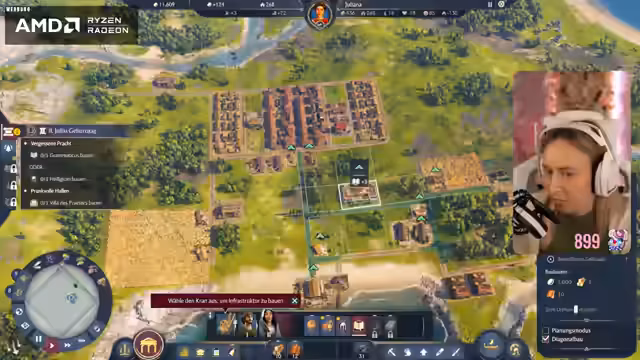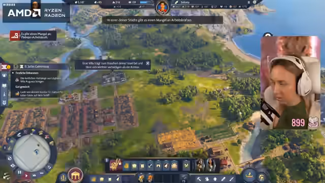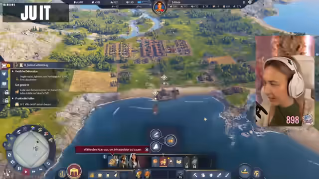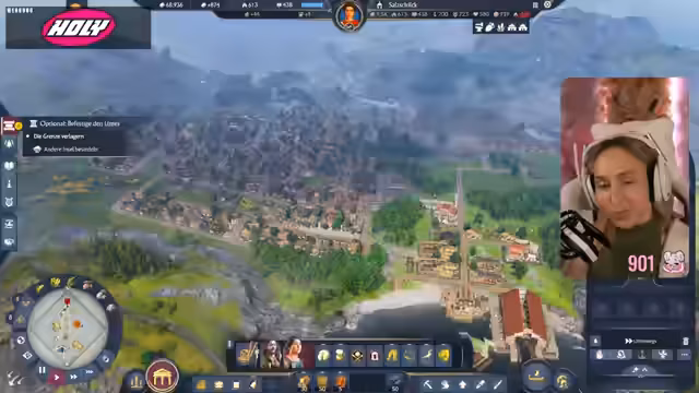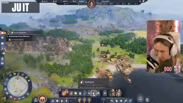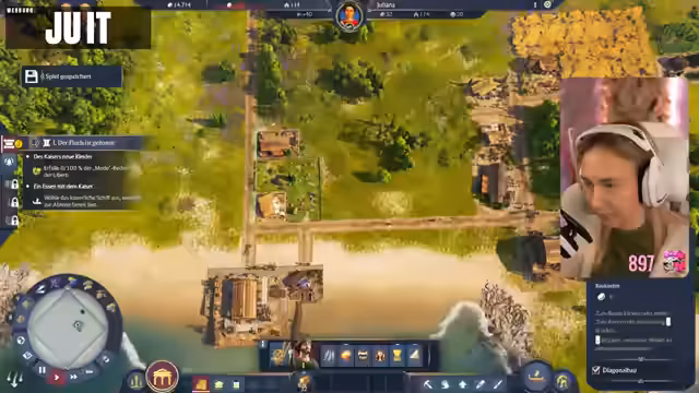 05:10:49Der Streamer plant den Bau einer Kaserne, priorisiert jedoch zunächst die Bierproduktion, wofür Gerstenhöfe und eine Brauerei benötigt werden. Die Brauerei senkt die Brandsicherheit und das Wissen, was eine strategische Platzierung innerhalb der Stadt erfordert. Es wird festgestellt, dass das Spiel viele neue Gebäude und Produktionsketten freischaltet, was es schwierig macht, mit dem Bau Schritt zu halten. Ein Phanum, eine synkretistische religiöse Struktur, wird als vorteilhaft für das Wissen identifiziert. Die Diskussion über die Kampagne und die Notwendigkeit, Militär aufzubauen, wird fortgesetzt, wobei der Streamer seine Abneigung gegen frühzeitige Kriegsführung äußert. Er reflektiert über seine Kindheitserinnerungen an Mittelaltermärkte und Bogenschießen, was eine persönliche Note in die Diskussion einbringt. Die Bedeutung von Einkommen und Ansehen durch die Produktion von Hosen und Schmuck wird ebenfalls hervorgehoben, während die Wahl einer Schutzgottheit wie Neptun aufgrund der Grundbedürfnisse der Muscheln getroffen wird.