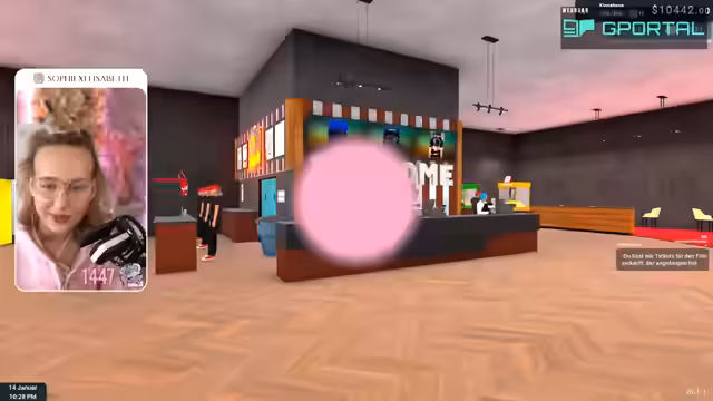 04:11:35Zu Beginn des Streams konzentriert sich die Streamerin auf den Ausbau ihres Kinobetriebs. Sie präsentiert den aktuellen Stand mit vier Kinosälen und erklärt, dass bis zu acht Kinosäle möglich sind. Nach dem ersten Filmlauf stellt sie fest, dass der Betrieb anläuft, die Reinigungskraft jedoch nicht hinterherkommt und eine zweite eingestellt werden muss. Gleichzeitig bemerkt sie den Andrang der Besucher, die die Bude einrennen, und stellt die hohe Verschmutzungsrate fest.