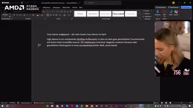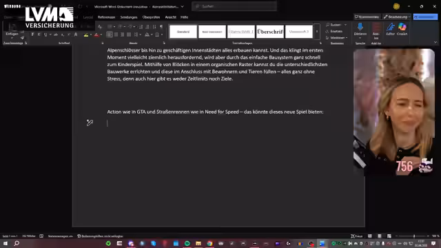 02:18:12Die Streamerin zeigt ihren Arbeitsalltag, bei dem sie Skripte für Videos schreibt, Aufnahmen von Trailern prüft und diese anschließend in einer Videobearbeitungssoftware zuschneidet. Sie berichtet von einer aufwendigen Terminplanung für Physiotherapie und Lymphdrainage, die an einem Tag zu langen Anfahrten nach Köln führt. Beim Schnitt der Videos achtet sie auf Details wie dynamische Übergänge, passende Musik und die Anpassung der Bildausschnitte.