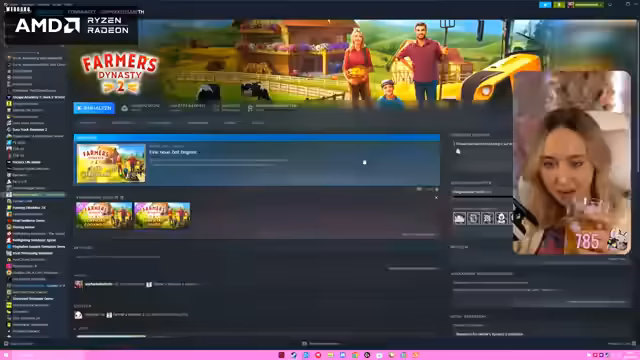 01:36:17Nachdem das Gespräch sich wieder lockerer gestaltet und über Sponsoring von Marken wie Fanta und Traktoren gesprochen wurde, beginnt der eigentliche Streaminhalt. Das Spiel 'Farmer's Dynasty 2' wird gestartet. Gleichzeitig treten massive technische Schwierigkeiten auf; die Grafik ist extrem ruckelig und unflüssig, was den Genuss des Spiels stark beeinträchtigt. Verschiedene Einstellungen werden getestet, um das Problem zu beheben, ohne jedoch sofortigen Erfolg zu erzielen.