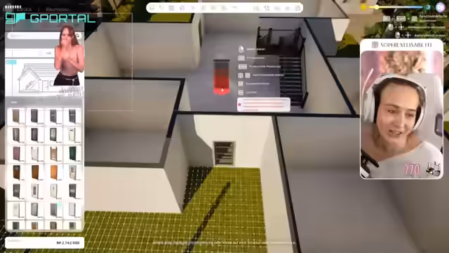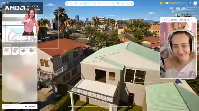 02:33:18Die Familie zieht in die Stadt Bliss Bay ein und beginnt mit dem Bau eines Hauses auf einem leeren Grundstück. Die Streamerin entscheidet sich für ein großzügiges Landhaus mit hohen Decken. Es werden verschiedene Elemente wie Wände, Türen, Treppen, eine Garage und sogar ein Pool platziert. Der Fokus liegt auf einer loft-artigen, offenen Raumaufteilung mit einer Galerie im Eingangsbereich, die einen Blick nach unten ermöglicht.