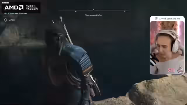 07:17:03Zurück in Assassin's Creed setzt die Streamerin ihre Geschichte fort. Sie navigiert durch die Spielwelt, sucht nach Zielpersonen und führt Kämpfe. Dabei stößt sie auf einen Bug, bei dem mehrere Gegner auf einem Fleck zusammenstehen, und kämpft sich durch eine Mission, bei der sie einen Feind tötet und Informationen über einen Charakter namens Kamakichi einholt. Der Sound des Spiels wird gelegentlich als seltsam beschrieben, aber das visuelle Design der Umgebung, insbesondere die blühenden Kirschbäume, wird positiv hervorgehoben.