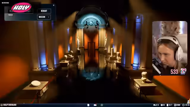 02:57:59Die Streamerin erklärt die Handlung des Spiels, bei der ein Doppelgänger aus einer Parallelwelt durch das Museum streift. Sie diskutiert einen Schlüssel, der die Kontrolle über Tore ermöglicht, und ist unsicher, ob sie nur Adomalin finden oder aktiv nach dem Schlüssel suchen muss. Während sie sich vor Dieben in einer Toilette versteckt, steigt die Anspannung durch die letzte Stunde und die Gefahr, von hinten angegriffen zu werden. Die Story deutet an, dass der Doppelgänger sie aus einem Paradoxon retten wollte, doch eine Bombe explodiert unerwartet, obwohl sie die Endsequenz erreicht hatten.