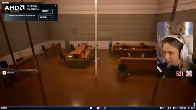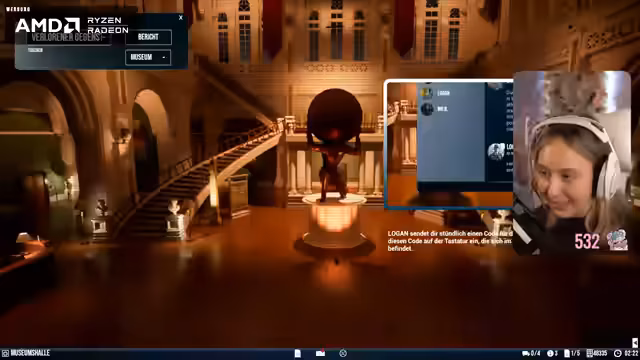 01:23:56Sophie startet das Horror-ähnliche Spiel 'Museum', bei dem sie nachts als Wächterin Anomalien überwachen und melden muss. Nach dem Update wurden die Schwierigkeitsstufen angepasst: Statt 7 benötigt sie nur noch 5 Anomalien pro Stunde. Sie erklärt das Spielprinzip (fehlende Gegenstände, Diebe, Doppelgänger) und betont, dass es zwar gruselig, aber nicht extrem schrecklich sei. Während des Spielens muss sie regelmäßig Fenster überprüfen, um Diebstähle zu verhindern, und nutzt Kameras zur Überwachung. Technische Probleme mit Tooltips und Codes (75242) werden gelöst.