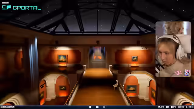 03:17:23Der Stream beginnt mit der Erkundung des Museumsgeländes im Spiel. Das Ziel ist, schnell nach Anomalien wie fehlenden Gemälden oder beschmierten Wänden Ausschau zu halten, um die vorgegebene Quote zu erfüllen. Die Streamerin versucht verschiedene Räume und Ebenen abzuschweifen, wobei sie sich jedoch unsicher ist, ob sie durch einen schnellen Wechsel der Kameraperspektiven mehr findet. Der erste Fokus liegt auf der Suche nach offensichtlichen Fehlern, doch initial wird wenig gefunden und die Zeit rennt ihr davon.