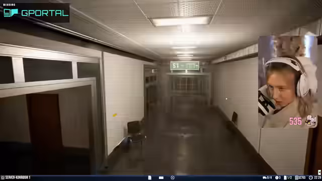 02:40:04Die Spielenden bemerken unordentlich stehende Stühle und erhalten einen neuen Code für die Garage: 764. Plötzlich fällt der Strom im Büro aus, und die Spielenden müssen im Dunkeln agieren. Es wird festgestellt, dass die Taschenlampe mit einem Rechtsklick aktiviert wird. Eine Nachricht weist darauf hin, dass bei einem Kameraausfall ein defekter Server auf Ebene Minus 1 repariert werden muss. Die Spielenden begeben sich zu Server 3 auf Ebene Minus 1, um ihn zu reparieren. Nach der Reparatur kehren sie ins Büro zurück und stellen fest, dass sie zu langsam waren, was zu einer Niederlage führt. Es wird beschlossen, bei einer Niederlage "erneut versuchen" zu wählen, um den Tag von vorne zu beginnen und sich besser auf den Zeitdruck einzustellen. Es wird auch bemerkt, dass man rennen kann, um Zeit zu sparen.