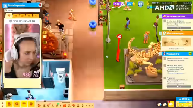 sophiexelisabeth spricht über Just Chatting Inhalte, Hautprobleme und Wohnungsumbauten. Vorstellung neuer AMD Produkte und Twitch-Integration. Im Spiel Two Point Museum erlebt sophiexelisabeth Probleme mit der Twitch-Integration, trifft Personalentscheidungen und baut das Museum aus. Es gibt Expeditionen und neue Charaktere. Die Sicherheitsmaßnahmen werden verstärkt.