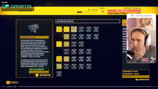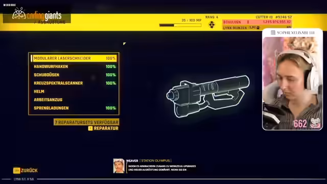03:38:18Nachdem das Spiel gestartet wurde und der Stand vom Xbox Game Pass übernommen wurde, beginnt die Streamerin mit der Erklärung der grundlegenden Spielmechaniken. Sie platziert einen Sticker und stellt den Handwurfhaken vor. Ein wichtiges neues Werkzeug wird vorgestellt: der Verbinder. Dieses Tool, dessen Produktion 2262 eingestellt wurde, reduziert die Anzahl benötigter Abbracker und führt zur zweitgrößten Steigerung der Bergungseffizienz in der Geschichte von LYNX.