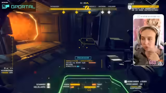 02:26:27Nach dem ersten Schiffsabwrack, bei dem die Streamerin über eine Million Credits verdient hat, aber auch erhebliche Schäden verursacht hat, steigt sie in den nächsten Rang auf. Sie wechselt zu einem schwereren Schiff und widmet sich dem Zerlegen und Sortieren von Teilen, um sie im Schmelzofen zu verwerten. Ihr Ziel ist es, ihre hohen Schulden abzubauen, was sich jedoch als zeitaufwägig herausstellt. Sie stellt fest, dass das Spiel trotz der komplexen Aufgaben als sehr chillig und entspannt empfinden wird.
