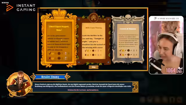 06:28:33Nach Abschluss des Tutorials werden tieferliegende Spielmechaniken eingeführt. Der Spieler kann seinen Ruf verbessern, indem er sein Geschäft dekoriert, was die Qualität der Kunden steigert. Ein zentrales Element ist das Beziehungsmanagement zu drei Fraktionen: dem Königreich, den Dorfbewohnern und den Piraten. Dies wird durch tägliche Quests beeinflusst, deren Erfolg oder Misserfolg direkte Auswirkungen auf Spielereignisse hat. Der Erwerb von Lizenzen und das Management von Lieferungen werden ebenfalls Teil des Gameplay.
