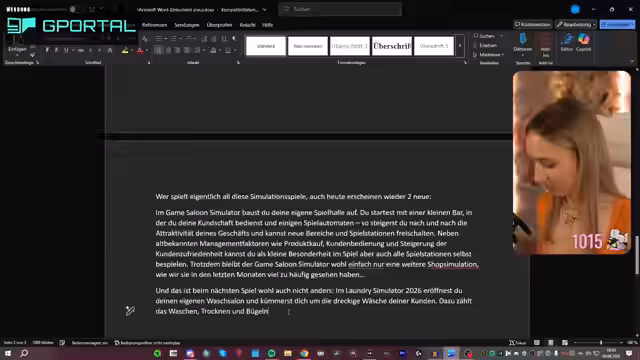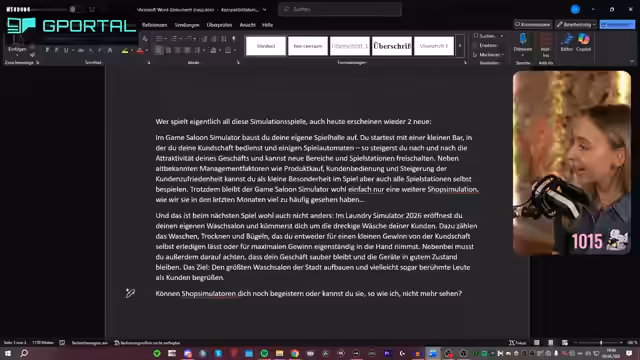 05:33:34Der Stream beginnt mit der Vorstellung zweier neuer Simulationsspiele. Zuerst wird der Game Saloon Simulator behandelt, bei dem man eine eigene Spielhalle aufbaut, Kunden bedient und neue Spielstationen freischaltet. Als Besonderheit kann man alle Spielautomaten selbst spielen. Anschließend wird der Laundry Simulator 2026 vorgestellt, bei dem man einen Waschsalon leitet, Wäsche wascht, trocknet und bügelt, um den größten Betrieb der Stadt zu errichten. Beide Spiele werden als typische Shop-Simulationen eingestuft, die in letzter Zeit häufiger vorkommen.