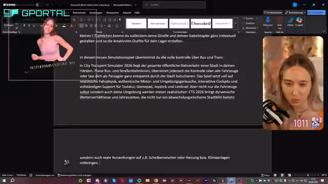 00:22:00Das Co-Working konzentriert sich auf das Verfassen der Texte für die geplanten Kurzvideos. Für den 10. April wird eine Map-Vorstellung der neuen LS25-Karte 'Goethe' vorbereitet. Die Streamerin äußert sich neutral und positiv zu den Features wie den vielen Bodeneckenwinkeln, den zusätzlichen Feldfrüchten und der realistischen Gestaltung. Für den 12. April wird eine Vorstellung von 'Extreme Forklifting 3' geplant, ein humorvolles Simulationsspiel, das das Leben einer Gabelstapler-Giraffe schildert. Für den 14. April ist die Präsentation von 'Alaska Goldfever' und 'City Transport Simulator 2026' vorgesehen, wobei die Reihenfolge noch angepasst wird.