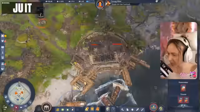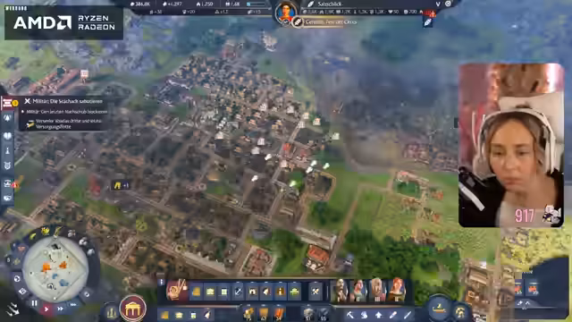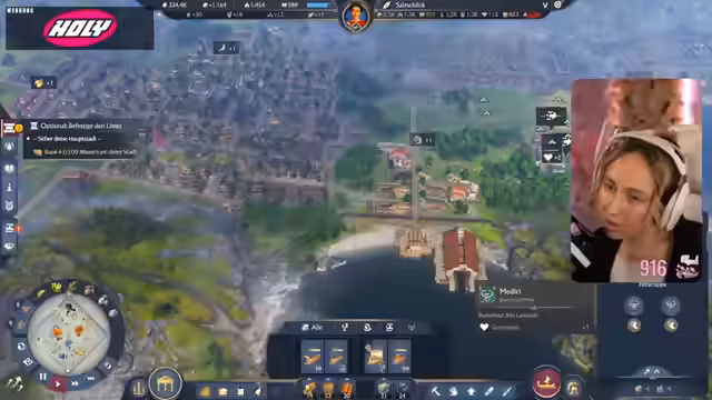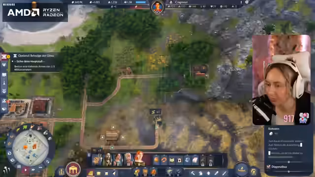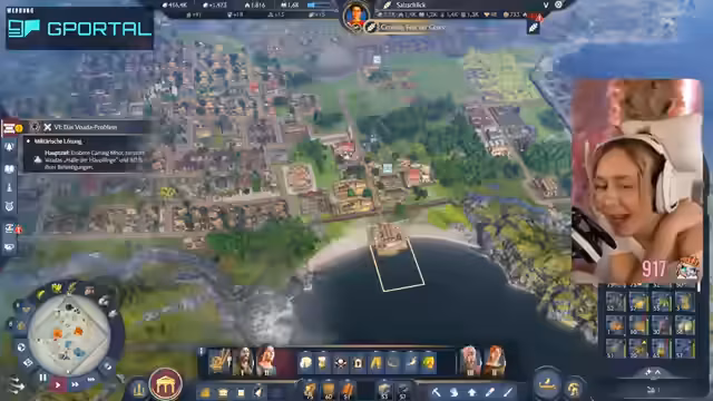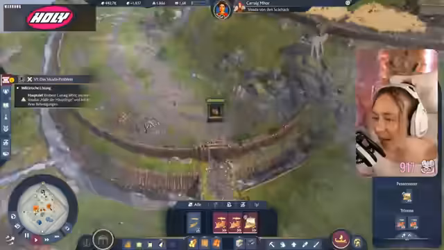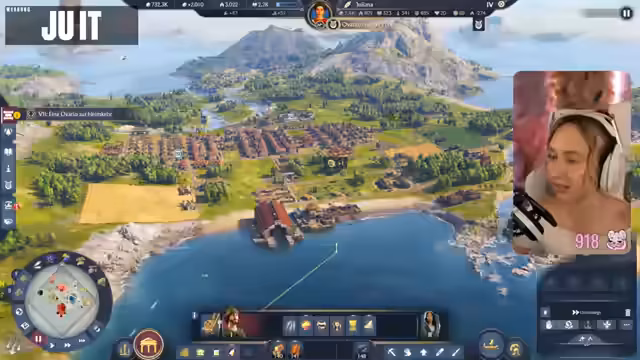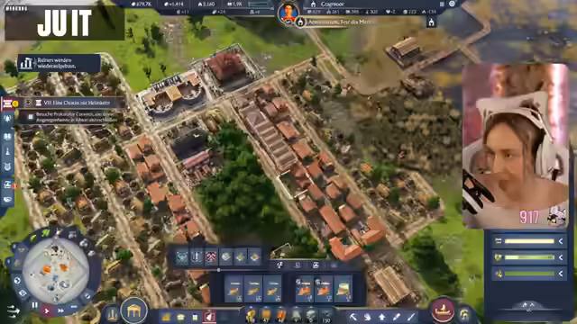 00:40:13Die Streamerin teilt ein Update zu einem technischen Problem, das sie beim Spielen von League of Legends hatte: Blackscreens nach jeder Runde, die ein Neustarten des PCs erforderten. Eine einfache Lösung, die von einem Zuschauer vorgeschlagen wurde – den Monitor aus- und wieder einzuschalten – hat das Problem behoben, was sie überrascht und freut. Anschließend beginnt der Anno 117 Grind, auf den sie sich sehr freut. Sie hat sich für den Stream mit Snacks wie Lachgummis, Nutella-Croissants und Tiefkühl-Zimtschnecken eingedeckt und plant, später ein 'Jewett-Gericht' zu essen. Im Spiel selbst steht sie vor der Herausforderung, mehr Platz für neue Bürger zu schaffen und die Forschung an Schiffsskorpionen voranzutreiben, um ihre Schiffe kampffähig zu machen. Sie diskutiert Spielmechaniken wie den Bau von Mauern und Toren sowie die Nutzung von Bergplätzen für Rohstoffe wie Granit. Die Streamerin fragt das Publikum nach ihrer Meinung zur Musik von Anno 117 im Vergleich zu Anno 1800 und empfindet die neue Musik zwar gut, aber noch nicht so mitreißend wie die des Vorgängers. Es wird auch über die Einsteigerfreundlichkeit von Anno 117 gesprochen, wobei die Streamerin meint, dass Neulinge etwas Zeit benötigen, um sich einzuarbeiten.