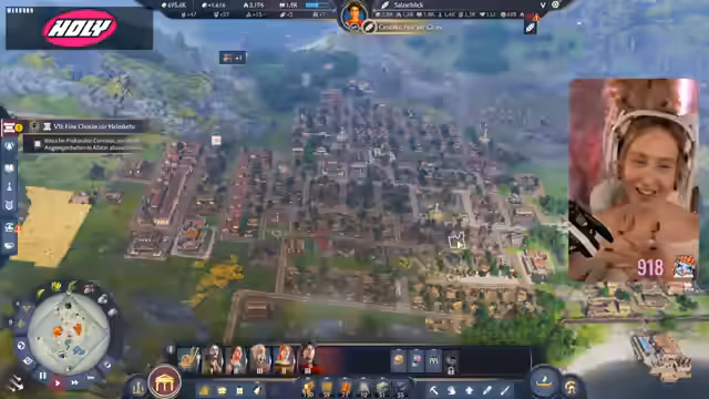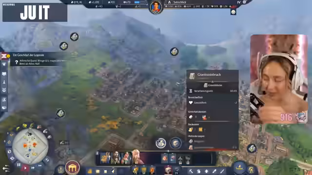 00:55:24Die Streamerin steht vor einer komplexen Quest in Anno 117, bei der sie ein „majestätisches Biest an Arzhof“ bringen soll. Sie ist unsicher, was genau damit gemeint ist und überlegt, ob es sich um ihren Elefanten oder einen bronzenen Bullen handeln könnte, den sie in einer anderen Welt gefunden hat. Die Quest erfordert strategisches Denken, da sie nicht weiß, welches Item die Aufgabe erfüllt. Parallel dazu muss sie sich um die Bedürfnisse ihrer Bürger kümmern. Obwohl die Bürger scheinbar sehr zufrieden sind, fehlt es an Platz für neue Einwohner. Sie überlegt, wie sie die Bevölkerungsanzahl in den Häusern erhöhen könnte, was eine große Neuerung wäre. Die Streamerin plant, eine Sängerstube zu bauen, um mehr Einwohner anzulocken. Sie lehnt es ab, die Schwierigkeit des Spiels auf „Veteranen“ zu stellen, um den Frieden mit den anderen Fraktionen zu wahren, da sie bereits mehrfach angegriffen hat und überrascht ist, dass noch kein Krieg erklärt wurde. Zudem entdeckt sie, dass sie Granit abbauen muss, um bestimmte Upgrades wie Rinderbraten und Wein zu ermöglichen, was wiederum Edelmänner erfordert. Sie lobt die Neuerungen in Anno 117, insbesondere den Skilltree und die Gottheiten, sowie die Möglichkeit, Truppen auszubilden und auf Schiffen zu transportieren, was sie als sehr cool empfindet.