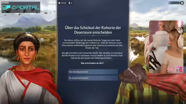 01:22:11Eine moralische Entscheidung muss getroffen werden: Das Schicksal der neunten Kohorte Tungro, die nach einer Niederlage zu den Skaha übergelaufen ist. Nach römischem Recht wäre der Tod die Strafe für Deserteure, doch im Grenzland herrschen andere Regeln. Es wird eine Umfrage gestartet, um die Meinung der Zuschauer einzuholen, obwohl die Entscheidungsträgerin bereits eine Tendenz hat. Die Befürchtung besteht, dass eine andere Entscheidung Widerstand der alten Garde hervorrufen könnte. Die Frage, ob die Deserteure aktiv für die Skaha gekämpft oder nur isoliert gelebt haben, beeinflusst die Bewertung der Situation. Die Entscheidung, die Deserteure zu verschonen, führt zu einer deutlichen Verbesserung der Beziehung zu den Skaha, was als positiver Schritt in Richtung einer friedlichen Lösung gewertet wird. Dies steht im Gegensatz zu anderen Spielern, die aggressive Strategien verfolgen und Inseln niederbrennen.