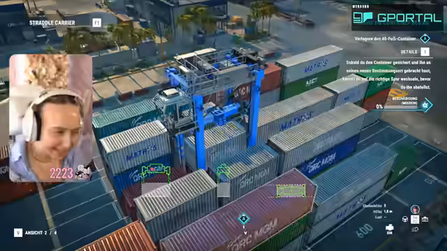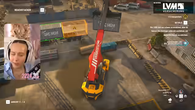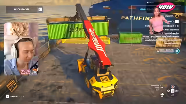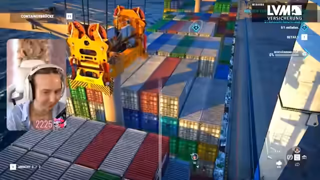 04:04:40Ein Auftrag, der das Verschieben von Fracht beinhaltet, wird angenommen. Beim Versuch, mit der Containerbrücke zu arbeiten, stößt die Streamerin auf mehrere technische und steuerungsbezogene Probleme. Sie muss die genaue Bedienung des Kranarms lernen, unterschätzt die Notwendigkeit, den Arm auszuklappen, und kämpft mit der Höhenverstellung des Kranes, was zu mehrmaligen Fehlversuchen führt.