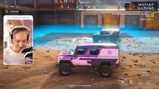 03:08:44Nachdem der Weg frei ist, stoßen sie auf den nächsten Auftrag: das Bergen eines Generators in einer verlassenen Anlage. Die Spieler finden den Generator, stellen aber fest, dass ihr aktuelles Fahrzeug, ein Scout, dafür ungeeignet ist. Sie erkennen einen Kran in der Nähe, können aber nicht damit interagieren. Die Frage, wie sie den Generator transportieren sollen, bleibt zunächst unbeantwortet. Eine Lösung könnte sein, ihn hinter ihr Fahrzeug zu ziehen, doch dies scheint praktisch schwierig. Die Streamerin überlegt, ein passenderes Fahrzeug aus ihrer Garage zu holen, um die Mission fortzusetzen.