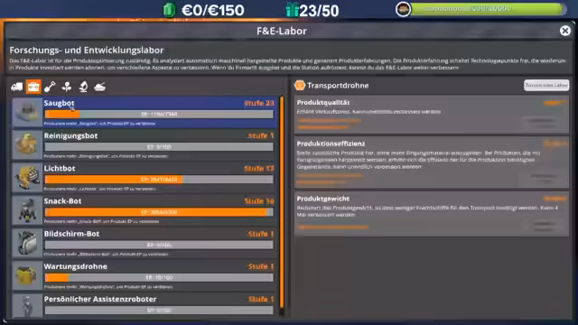 01:30:26Zu Beginn des Streamings wird die Planung für neue Produktionsanlagen detailliert erörtert. Der Fokus liegt darauf, eine Pflanzdrohne und einen Bildschirm-Bot zu entwickeln, wobei die Pflanzdrohne Priorität erhält, da sie keine Hover-Technologie benötigt und einfacher zu integrieren ist. Gleichzeitig wird der Bestand an Maschinenteilen und anderen Komponenten überprüft und die Notwendigkeit neuer Materialimporte festgestellt. Ein Rückblick zeigt, dass der Tagesgewinn auf über 382.000 gesteigert werden konnte, allerdings besteht weiterhin Unklarheit darüber, ob es sich dabei tatsächlich um den Nettogewinn oder nur den Umsatz handelt, da die Ausgaben noch nicht vollständig überschaubar sind.