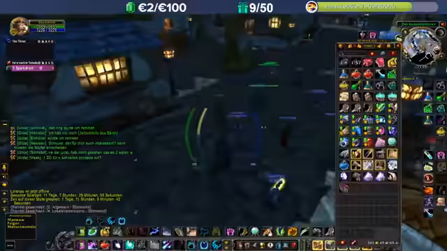 03:24:31Der Streamer nutzt den Ruhestein, um nach Sturmwind zu reisen und den Valentins-Tag-Buff zu holen, der für einen Tag hält. Er muss dafür eine männliche Stadtwache mit einem Herzen-Symbol über dem Kopf finden und ein Geschenk annehmen. Anschließend kümmert er sich um sein überfülltes Inventar, indem er überschüssige Reagenzien wie Eiskappen an die Gilde schickt. Er hofft, dass diese Materialien von Gildenmitgliedern genutzt werden, anstatt sie einfach zu verkaufen, da der Verkauf in der aktuellen Phase nicht sinnvoll ist.