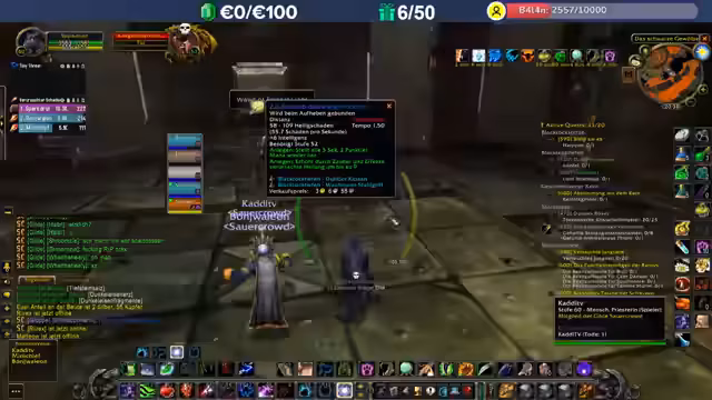 00:04:52Der Stream startet mit der Ankündigung eines gemeinsamen 60er Dungeons, hauptsächlich UBRS (Upper Blackrock Spire), der als Mittags- oder Nachmittagsstream um 15:30 Uhr geplant ist. Der Streamer plant, möglicherweise als High-Level-Charakter zu gehen, sammelt zunächst benötigte Pets und Kräuter an der Bank, darunter zwei Petris und die Zutaten für einen Stein der Weisen. Nach Vorbereitung von Gegenständen und der Bank wird der Weg nach Blackrock angetreten, um den Dungeon zu beginnen.