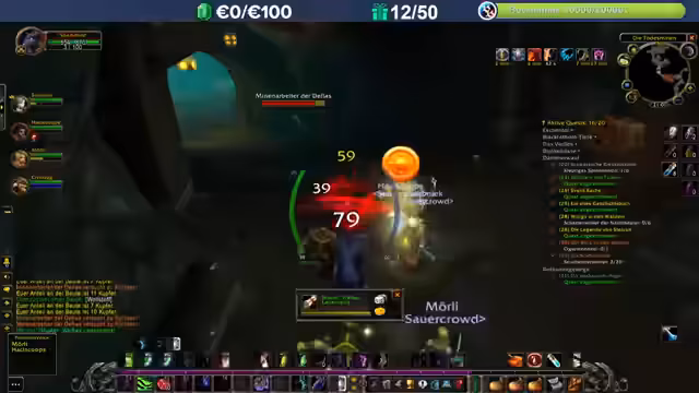 02:56:41Die Gruppe betritt die Todesminen und beginnt mit dem Aufräumen der ersten Gegner. Der Streamer erklärt die grundlegende Taktik: Der Tank zieht die Gegner zu der Gruppe, während sich die anderen Spieler, insbesondere der Heiler und der niedrigstgelevelte Spieler, in sicherer Entfernung aufhalten. Der Fokus liegt darauf, Merle vor Panikaktionen zu bewahren, da ihr Rückzug unweigerlich dazu führen würde, dass die Gegner sie anvisieren. Die Gruppe bewegt sich vorsichtig durch die ersten Räume und stellt sicher, dass immer nur der vom Tank angezielte Gegner von der restlichen Gruppe attackiert wird, um einen geordneten Kampfverlauf zu gewährleisten.