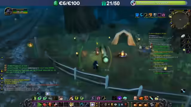06:43:55Der Streamer arbeitet daran, mehrere Quests parallel abzuschließen, darunter das Töten von Dunkelläufern und Seuchenverbreitern. Er sucht nach den letzten Quest-Mobs und bereitet sich darauf vor, in die Stadt zu reisen, um die Quests abzugeben. Dabei wird sein Inventar voll, was ihn zwingt, überflüssige Items wie Hammelkoteletts und Gewürze zu verkaufen. Er stellt fest, dass er zum Kochen eine Feuerstelle benötigt und seine Vorräte an Nahrung und Buffs aufstocken muss.