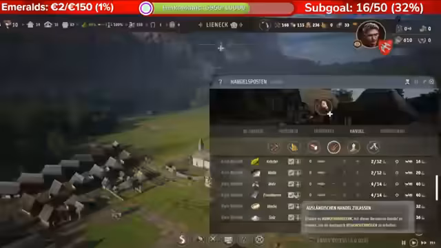 02:51:31Neue Personen ziehen zu, und die Zustimmung steigt. Es wird eine Hofstättenstufe 2 oder höher benötigt, um eine Kleinstadt zu erreichen. Beim Viehposten wird importiertes Vieh transportiert. Es wird überlegt, wie mit dem Expandieren begonnen werden soll, und wie lange es dauert, bis die Lämmer aufwachsen. Eine neue Familie zieht ein, und es sind noch drei Häuser frei. Es wird überlegt, Malz zu importieren, da es für die Bierproduktion benötigt wird. Es wird festgestellt, dass der Fleischertrag von Schafen gering ist, und eine Metzgerei wird in Betracht gezogen. Eine Brauerei-Erweiterung wird in der Nähe der Taverne geplant, und die Metzgerei wird näher an den Schafen platziert. Neue Gesetze sind verfügbar, aber noch nicht relevant. Es wird beschlossen, Salz abzubauen und zu exportieren, und eine Salzgrube wird gebaut. Salz wird als Gebrauchs Gut exportiert, sobald ein Überschuss vorhanden ist. Es wird gehofft, dass der Handel auch ohne Handelsroute funktioniert. Bretter werden exportiert, und es wird festgestellt, dass der Holzfäller nichts zu tun hat. Malz ist angekommen, und Bier soll produziert werden. Der Arbeitsbereich des Holzfällers wird angepasst, und es wird gehofft, dass die Bäume nachwachsen. Es wird festgestellt, dass Büsche entfernt werden müssen, um Bäume anzupflanzen. Es wird überlegt, ein zweites Forsthaus zu bauen, und eine Taktik zum Entfernen von Büschen wird angewendet.
