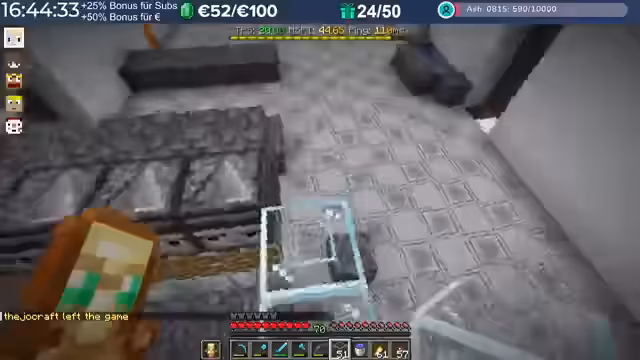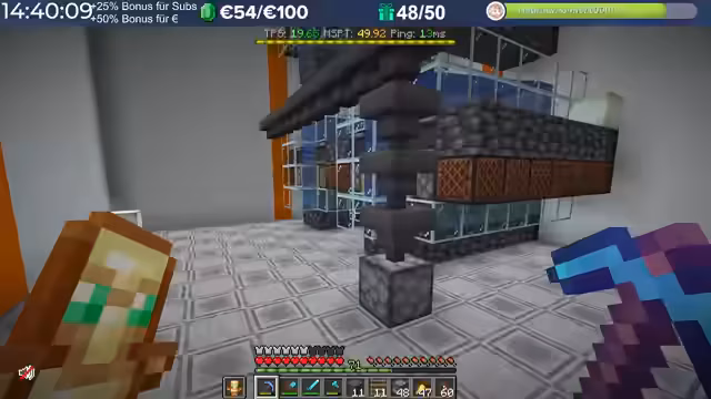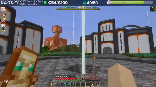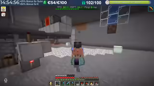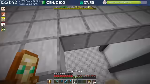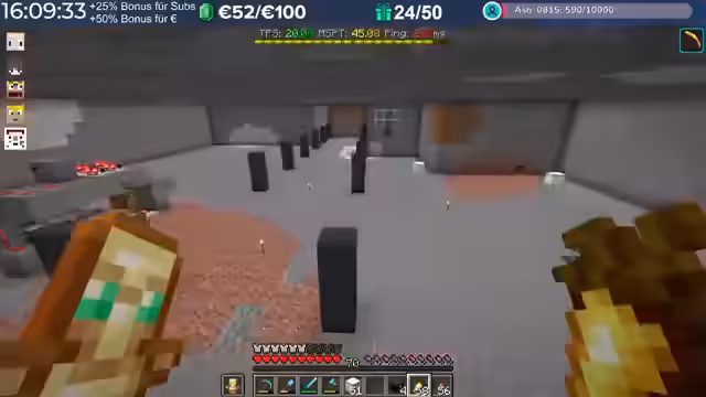 10:51:39Der Stream begrüßt die Zuschauer und berichtet von einem erfolgreichen YouTube-Short mit fast 20.000 Aufrufen. In Craft Attack wird an einem großen Gebäude weitergebaut, wobei der Fokus auf der Einrichtung eines Treppenhauses und der Vorbereitung von Rohstoffen wie Smoothstone liegt. Der Streamer kündigt den Bau einer Kelbfarm an, die in das neue Gebäude integriert werden soll, und arbeitet an einer effizienten Steinfabrik, die Redstone-technisch umstrukturiert werden muss. Aktuell gibt es jedoch Probleme mit der Tick-Geschwindigkeit, die das Sortiersystem beeinträchtigen könnten.