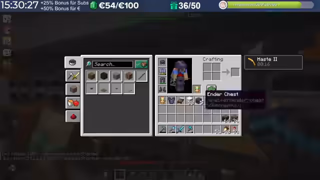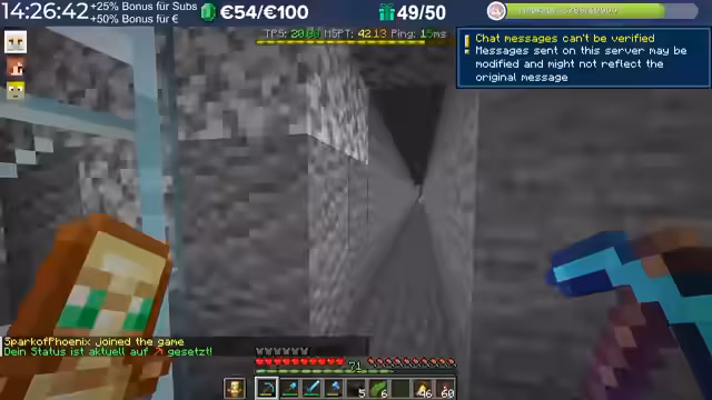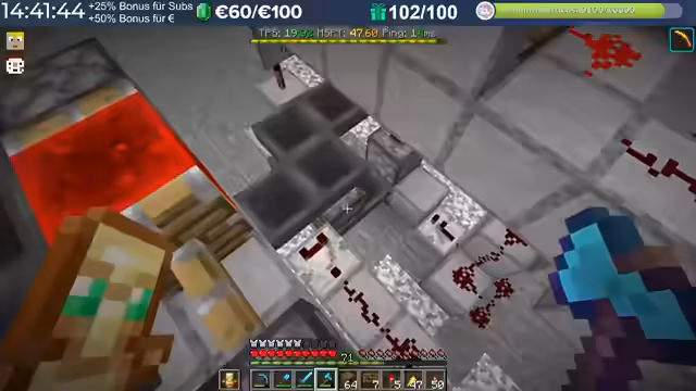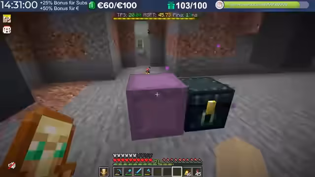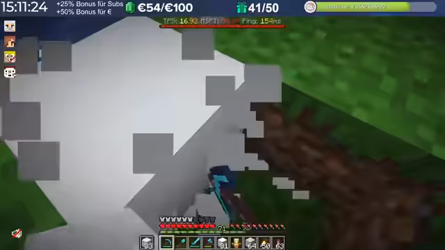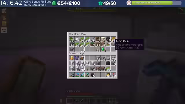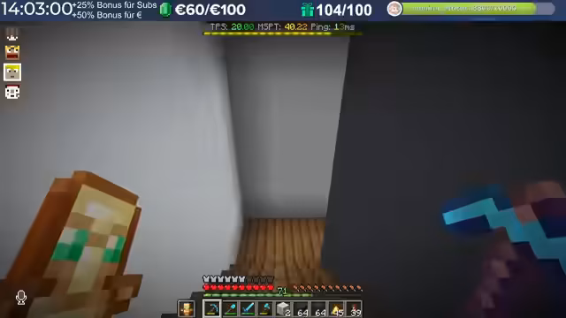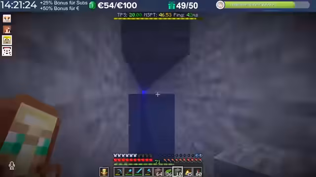 14:18:22Zu Beginn des Streamabschnitts wurden technische Probleme an der Maus und einer Taste angesprochen, die zu Doppelklicks führten und den Spielverlauf behinderten. Die Maus wurde daraufhin ausgetechscht, da ihre Lebensdauer nach anderthalb bis zwei Jahren durch intensive Nutzung häufig endet. Parallel dazu wurde das Thema des eingeschränkten Inventarmanagements in Minecraft diskutiert, insbesondere die lästige Limitierung von Item-Stacks auf maximal 99 Einheiten, was als frustrierend und technisch unnötig empfunden wird und den Arbeitsablauf, besonders beim Schmelzen großer Mengen an Ressourcen, erschwert.