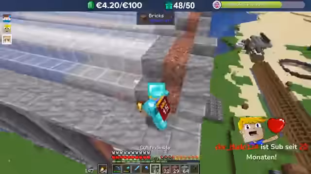 04:56:45Zu Beginn des Abschnitts wird das Beschaffen und Verarbeiten von Ressourcen für den Minecraft-Bau gezeigt. Streamer holen Leder und Papier für die Herstellung von Büchern und bereiten Baumaterial vor, darunter Polished Granite, Granitstufen und Ziegelstufen. Ein wichtiges Detail ist auch der Aufbau einer Kanone, die für den Bau benötigt wird. Material wird in Kisten verstaut, um es für den Bau zu organisieren. Die Rohstoffe werden aufgeteilt und für verschiedene Bauelemente verwendet.