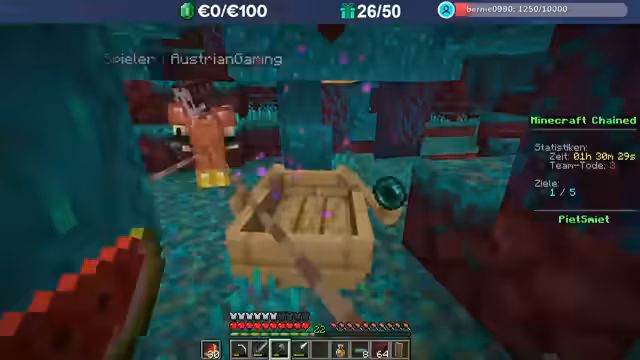 Minecraft-Spieler verbinden sich in einem besonderen Event, bei dem ihre Bewegungen miteinander verknüpft sind. Vier Teilnehmer müssen gemeinsam vor Fristablauf komplexe Ziele erreichen. Von der Ressourcensammlung über die Nether-Exploration bis hin zum vorbereiteten Kampf gegen den Enderdrachen wird jede Aktion zur Gruppenleistung. Die besondere Dynamik des Chained-Modus macht jeden Schritt zu einer Herausforderung für alle Beteiligten.