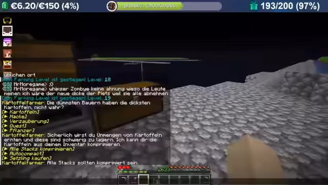 Es wurde mit der Vorstellung des neuen Projekts begonnen, wobei der Fokus auf dem Aufbau einer Kartoffelfarm liegt. Ein zentraler Mechanismus ist das Ernten von Kartoffeln, um Level zu sammeln. Mit speziellen Verzauberungen auf der Hacke kann das Farming effizienter gestaltet werden. Das Ziel ist es, mit 2000 Level ein Endgame-Werkzeug zu erwerben, das den Fortschritt erheblich beschleunigt.