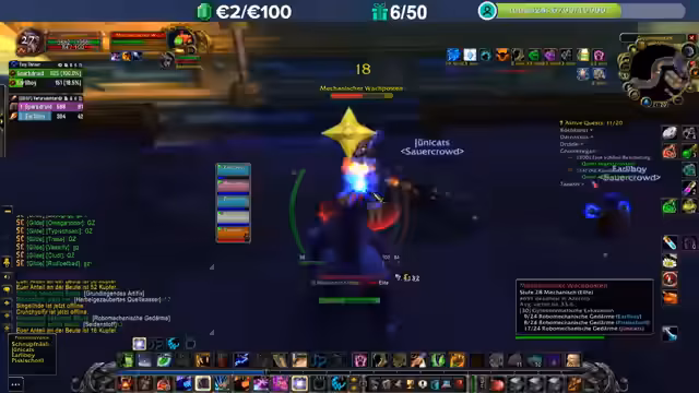 07:54:00Gildenmitglieder, insbesondere Sparco, wurden für ihre Unterstützung gelobt, als sie durch den Gnomeregan-Dungeon zogen. Auch wurde ein Angebot erwähnt, von anderen Spielern durch den Blackfathom-Tiefen-Dungeon geboostet zu werden. Darüber hinaus wurde die Gildenmission als fester Termin im Rahmen des Level-Prozesses erwähnt, die durch eine temporäre Aura beschleunigt wird.