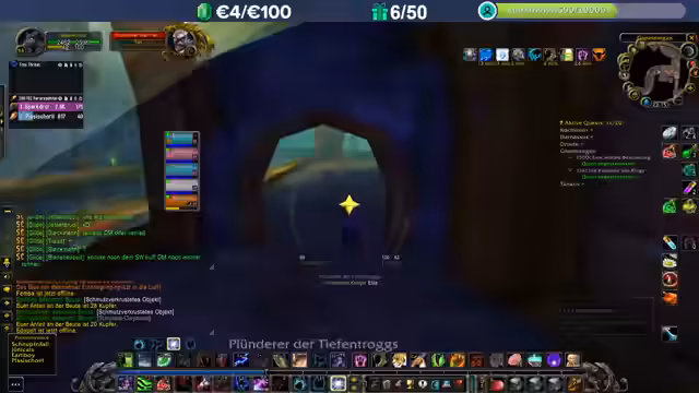 05:06:25Nach längerer Stille bemerkt der Streamer, dass er versehentlich gemutet war. Es kommt zu technischen Hürden beim Einstieg in die Instanz 'Blackfathom Deep', speziell bei der Konfiguration des Gruppenfensters zur besseren Übersicht. Er muss auf Anleitung des Chats die Funktion freischalten und das Interface anpassen, um die Gruppe besser platzieren zu können, was einige Zeit in Anspruch nimmt.