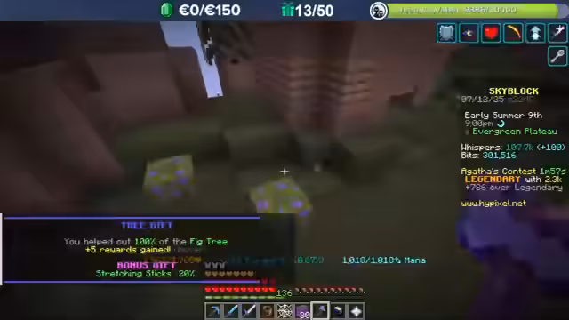 Es wurde ein Abend in Hypixel Skyblock absolviert. Der Fokus lag auf dem Fortschritt in verschiedenen Projekten und auf einem Community-Server. Ein persönlicher Bestrekord beim Baumabbauen wurde aufgestellt und neue Inhalte auf den Inseln erkundet. Auch Hunts und Sammlungen wurden vorangetrieben.