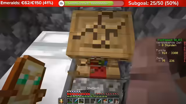 03:18:09Der Streamer fragt den Chat, ob es in den Belohnungspapieren einen Advancement gibt, der die Durchschuss-Verzauberung beinhaltet, um diese für Phantome zu nutzen. Er sucht nach einem Dorfbewohner, der verschwunden ist, und überlegt, wie er einen zweiten Händler erstellen kann, indem er einen Dorfbewohner in ein Boot packt und eine Handelsstation baut. Es wird festgestellt, dass ein Dorfbewohner seinen Job verloren hat, und der Streamer versucht, ihm zu helfen, seinen Job wiederzufinden. Er handelt mit einem Dorfbewohner, um Smaragde zu erhalten, und plant, diese für den Handel mit einem Kartografen zu verwenden, um eine Ozean-Explorer-Karte zu erhalten. Das Ziel ist es, den Dorfbewohnerhandel zu optimieren, um an wertvolle Ressourcen und Karten zu gelangen, die für die weitere Erkundung der Welt benötigt werden.