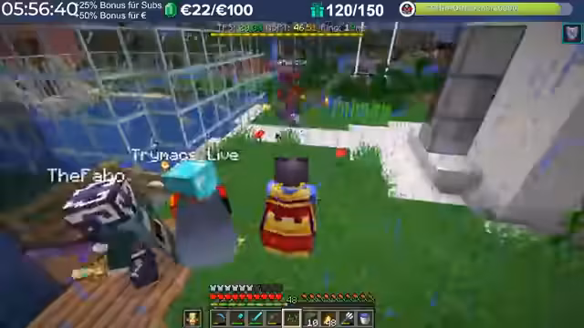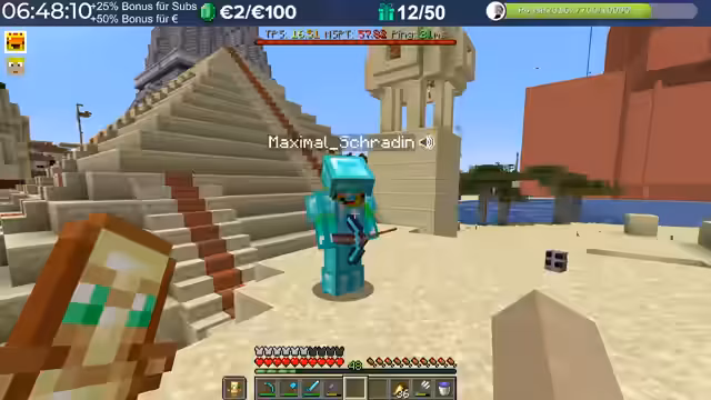 05:18:44Nachdem die Netherite-Rüstung erfolgreich hergestellt wurde, kündigt der Streamer an, einen Krater bauen zu wollen und plant, sich unter Montes Haus zu graben, um es zu sprengen. Er fragt nach Hilfe, um sich nicht zu vergraben oder vorbeizugraben. Der Streamer erklärt die Nutzung von Koordinaten in Minecraft mithilfe der F3-Taste, um die genaue Position eines Blocks zu bestimmen. Er schlägt vor, die Zielkoordinaten von Montes Basis herauszufinden, um sich präzise dorthin zu graben. Obwohl die genauen Koordinaten von Montes Diamant-Halle nicht sofort verfügbar sind, wird die Methode der Koordination als Schlüssel zur erfolgreichen Durchführung des Plans dargestellt. Der Streamer betont, dass er lediglich die Minecraft-Mechaniken erklärt und die Verantwortung für die Sprengung bei dem anderen Spieler liegt. Er verabschiedet sich, um Trimax bei einem automatischen Braustand zu helfen, und macht eine kurze Pause.