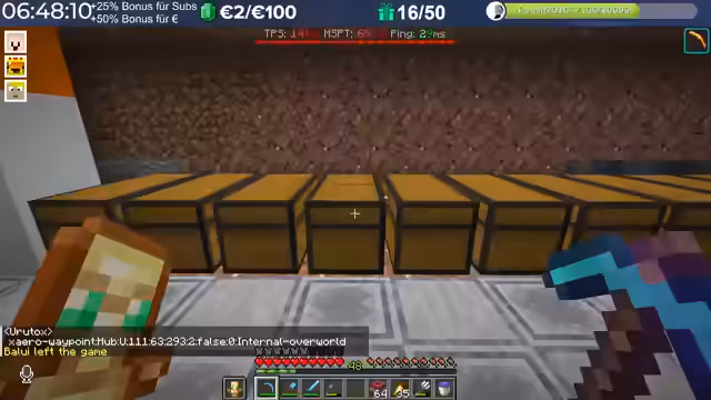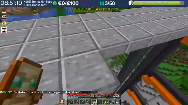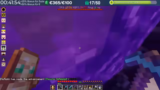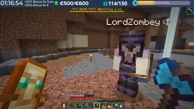19:20:08Es gab Serverprobleme aufgrund der Mob AI, die bei zu vielen Entities Schwierigkeiten verursachte. Nach einem Update, das Performance-Optimierungen rückgängig machte, haben alle Mobs mehr AI, was die DPS leicht reduziert hat, aber der Server läuft derzeit recht gut. Ein Spieler erlebt jedoch weiterhin Minecraft-Probleme wie verzögerte Geräusche beim Trident-Einsatz und verzögertes Landen nach dem Fliegen. Es stellt sich heraus, dass der Ping des Spielers sehr hoch ist (bis zu 2000), was auf eine schlechte Internetverbindung oder Routing-Probleme zwischen dem Spieler und dem Server hindeutet. Es wird geraten, die Verbindung zu überprüfen und gegebenenfalls den Support zu kontaktieren, falls die Probleme weiterhin bestehen. Der Spieler ist erleichtert, dass es sich nicht um ein Serverproblem handelt. Es wird empfohlen, die Situation zu beobachten und bei Bedarf weitere Schritte zu unternehmen, wie die Kontaktaufnahme mit dem Hoster für mögliche IP-Whitelisting-Lösungen.