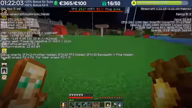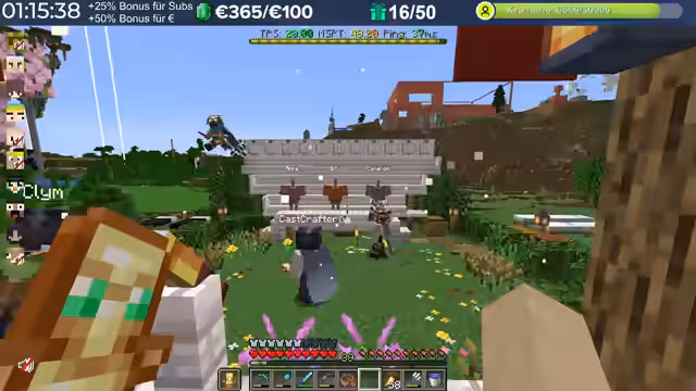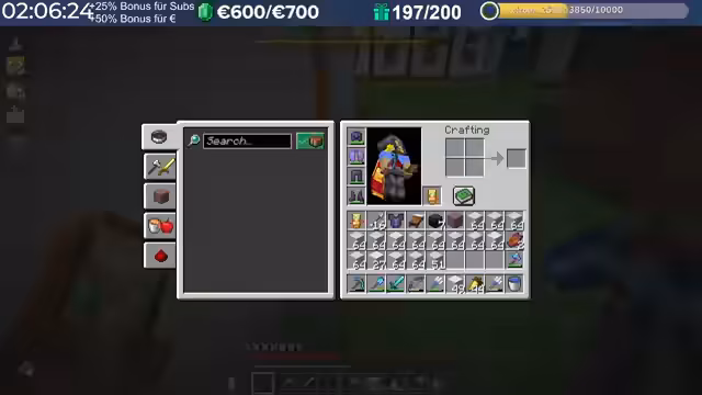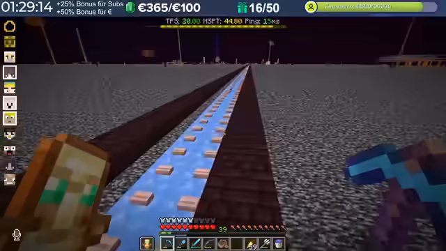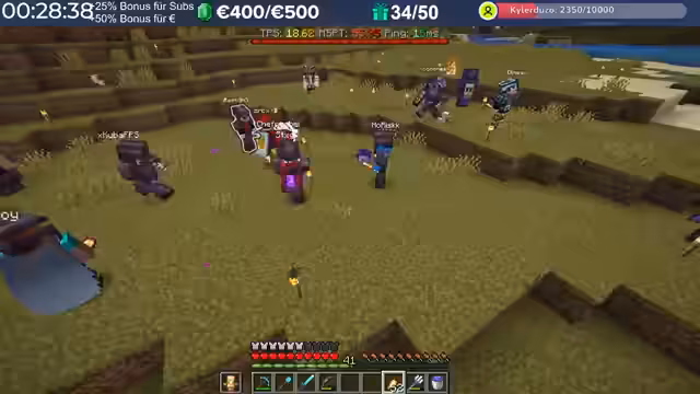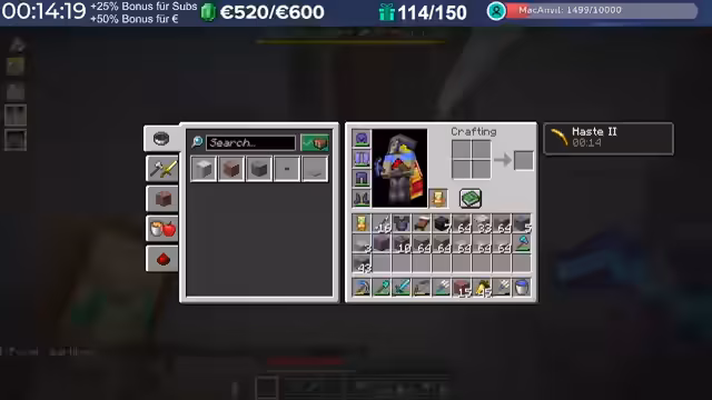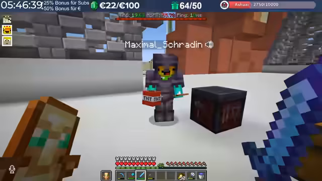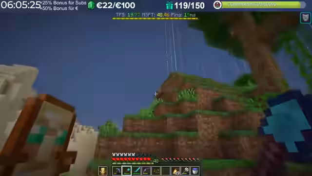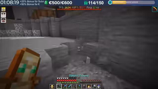 19:10:42Ein technisches Problem tritt auf: Items können auf dem Server nicht mehr angefangen werden, was das aktuelle Bauprojekt eines Minigames blockiert. Streamer werden aufgefordert, Singleplayer-Modus zu testen, um die Ursache zu finden. Da die Behebung unklar ist, wird ein alternatives Minigame in Betracht gezogen. Der Fokus verlagert sich auf das Sammeln von Materialien wie Andesit, um die Base weiter auszubauen und andere Bauprojekte fortzusetzen.