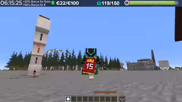 06:33:55Während des Streams wird die Umgebung erkundet, insbesondere der Eiffelturm und ein Golem. Ein Spieler bemerkt, dass jemand Glas im Eiffelturm gebaut hat, und ein anderer Spieler, Sradin, campiert dort und stirbt beim Aufstieg. Es wird die Möglichkeit diskutiert, vom Golem zum Eiffelturm und zurückzufliegen, wobei die Höhe als potenzielles Hindernis genannt wird. Spieler Trimax wird gefragt, ob er bestimmte Strukturen gebaut hat, was er bejaht. Es wird festgestellt, dass man vom Eiffelturm aus den Golem perfekt beobachten kann. Die Spieler überlegen, wie man vom Eiffelturm auf die Schulter des Golems gelangen könnte. Trimax lehnt es ab, weitere Treppen zu bauen, da er ein Date mit Spark hat, um einen automatischen Brauer zu bauen und Liebestränke zu brauen. Die Vorbereitungen dafür sollen bereits von Spark getroffen worden sein.