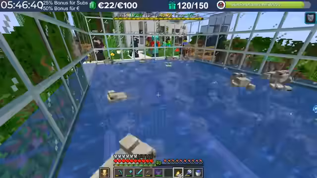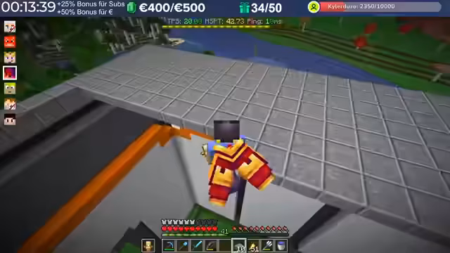 21:51:11Nach allgemeinen organisatorischen Themen und einem kurzen Einblick in den Community-Server, setzt der Streamer sein aktuelles Minecraft-Spiel im Multiplayer-Modus fort. Der Fokus liegt auf dem Bau einer Vorrichtung und der Lösung von Rätseln. Es gibt Diskussionen über Strategien, um an ein Drachenei zu gelangen, wobei es verschiedene Taktiken wie das Verteilen auf der Karte oder den Einsatz von Teleportern gibt. Parallel dazu wird über die Bestellung von Dönerpizza entschieden.