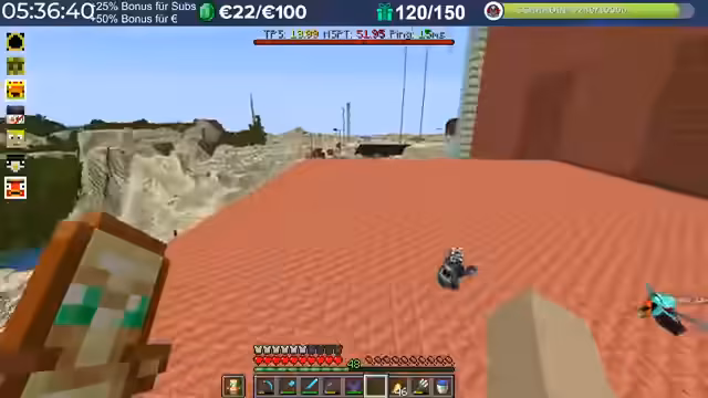 06:00:13Mehrere Spieler sind in Prank-Aktionen verwickelt, darunter die Platzierung von TNT und Kaulquappen in Montes Pool. Es wird diskutiert, welche Art von Prank akzeptabel ist und welche zu einem Bann führen könnte. Ein Spieler warnt vor der Verwendung großer Mengen TNT, da dies massiven Schaden anrichten könnte, der nur schwer zu reparieren ist. Parallel dazu werden Tests zur Server-Performance durchgeführt, indem die TPS (Ticks per Second) gemessen werden, während die Base eines Spielers (Trimax) geladen wird. Es wird festgestellt, dass das Laden der Base die TPS drastisch senkt, was auf eine hohe Belastung des Servers hindeutet. Dieses Experiment wird wiederholt, um die Ergebnisse zu bestätigen, und es zeigt sich, dass Trimax' Base den Server um 3-4 TPS reduziert. Die Spieler diskutieren die Auswirkungen dieser Belastung und die Notwendigkeit, die Chunks zu entladen, um die Performance zu verbessern.