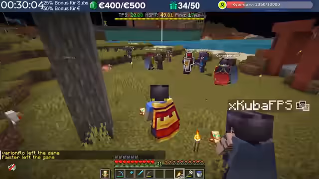 05:38:51Es wird eine hitzige Diskussion über den Hunger-Effekt im Spiel geführt, insbesondere darüber, wie schnell er Spieler sterben lässt und ob er möglicherweise verbuggt ist. Es wird vorgeschlagen, den Hunger-Effekt so anzupassen, dass er zwar optisch sichtbar ist, aber nicht sofort zum Tod führt, oder stattdessen Blindness oder Darkness als Effekte zu verwenden. Parallel dazu beklagt sich ein Spieler über den Verlust seiner Gegenstände, darunter eine Hose, Elytra, Bogen und Axt. Es wird vermutet, dass die Gegenstände entweder heruntergefallen und despawned sind oder von anderen Spielern aufgesammelt wurden. Ein Vergleich mit einem früheren Vorfall, bei dem Herr Bergmann beim End-Event heruntergeschubst wurde und seine Sachen verloren hat, wird gezogen, um die Frustration über verlorene Items zu verdeutlichen. Die Suche nach den verlorenen Gegenständen bleibt ergebnislos, was zu weiterer Enttäuschung führt.