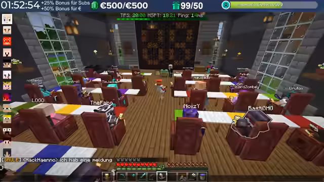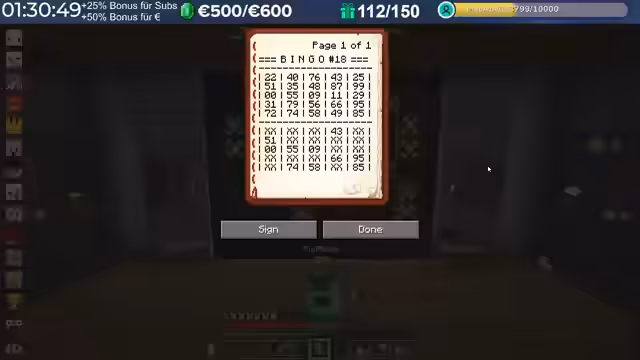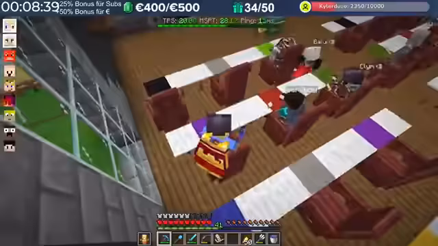 17:57:41Die Teilnehmer des Streams sind in Minecraft damit beschäftigt, sich für ein bevorstehendes Bingo-Event vorzubereiten, wobei es zu einigen humorvollen Verwirrungen kommt. Es wird versucht, einen Bus oder ein Minecart durch enge Passagen zu manövrieren, was sich als schwierig erweist. Die Spieler diskutieren über die Platzierung von Blöcken und die Notwendigkeit, ein Boot abzubauen, um den Weg freizumachen. Die Zeit drängt, da das Event um 10 vor 8 beginnen soll. Es gibt Anweisungen, die Bingo-Scheine zu verteilen und die Gäste zu begrüßen, wobei einige Spieler noch in ihre Rollen schlüpfen müssen, wie das Aufsetzen eines Hutes. Die Atmosphäre ist lebhaft und chaotisch, da die Spieler versuchen, sich zu organisieren und gleichzeitig die humorvollen Aspekte des Rollenspiels aufrechtzuerhalten. Es wird betont, dass die Bingo-Scheine auf keinen Fall signiert werden dürfen, da dies die Bearbeitung der Zahlen unmöglich machen würde.