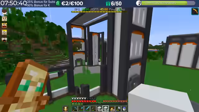 05:48:01Es wird an der Automatisierung eines Braustands gearbeitet, um den Prozess effizienter zu gestalten. Dabei treten Schwierigkeiten auf, da immer wieder eine Flasche zu viel durchrutscht und das System nicht perfekt funktioniert. Es werden verschiedene Delay-Einstellungen und Redstone-Konfigurationen getestet, um das Problem zu beheben. Parallel dazu wird das Design der eigenen Basis vorgestellt, die als Fabrikkomplex mit einer Technik-Base im Keller konzipiert ist. Es werden Pläne für eine Eisenfarm und eine Honigfarm erwähnt. Das übergeordnete Ziel ist es, ein größeres Bauprojekt zu realisieren, das Elemente wie Raumschiffe, Alien-Angriffe, ein Stargate und Geschütze auf den Dächern beinhaltet, um eine abwehrende Struktur zu schaffen. Das Vorhaben wird im Singleplayer vorbereitet, um die Designs und Funktionalitäten vor der Umsetzung auf dem Server zu testen.